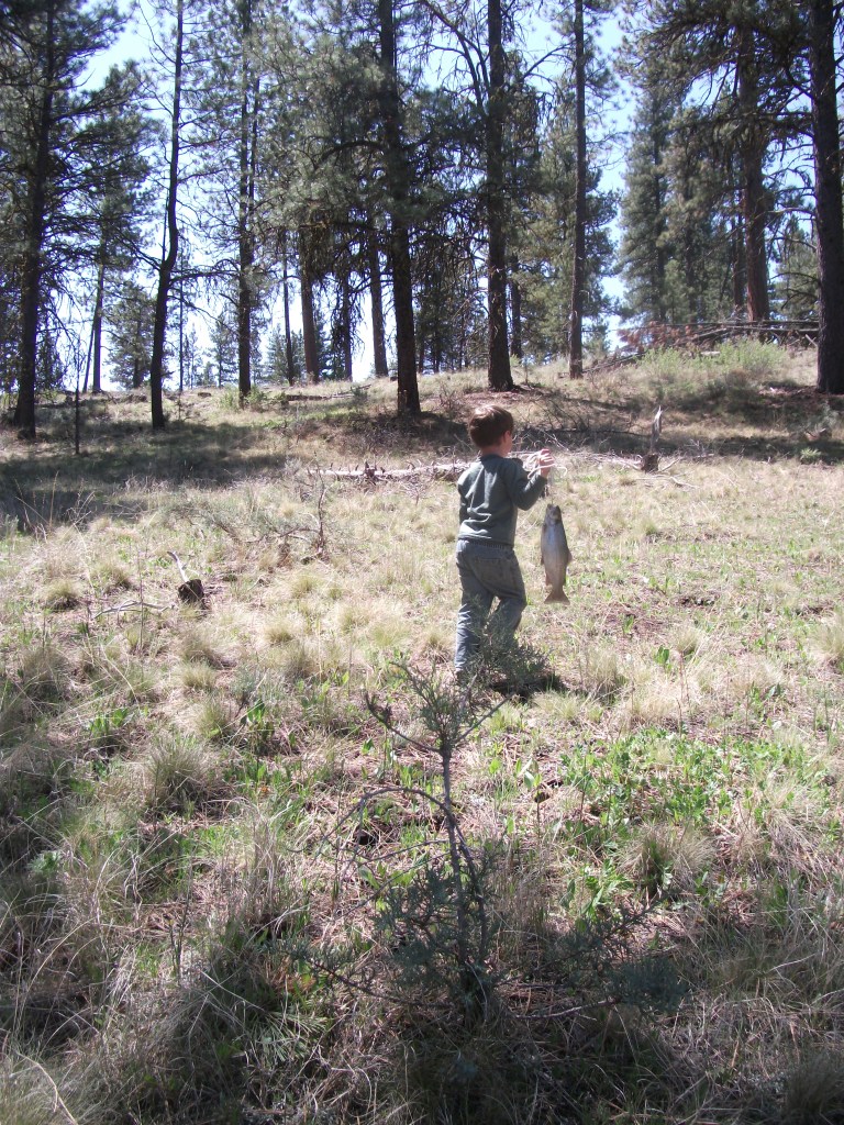 My five-year old son has insisted on a catch and cook fishing/camping trip for a while. This year we have lined up a few such missions at the Turb Memiors. The first was an 80 mile trek to a productive reservoir with a healthy population of well fed plumpkins. Our journey lead us through the agricultural valleys and gentle mountains of Crook County, Oregon. Green in spring under the powerful sun.