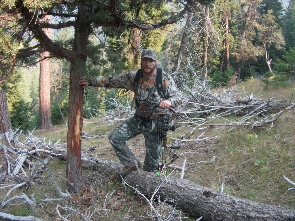 A brief description of “the hole” is needed to set the stage. The hole is owned completely by fine the tax paying citizens of the USA. It is void of any roads and motorized entry. Water is present in the form springs, side draws, and a perennial stream that tumbles through the entire length of this formidable canyon. The north slopes are loaded with blowdown, old growth timber, and stands of dark timber. The south slopes are drier with pine, older stands of tasty mountain mahogany, sage and bunchgrass. Game trails traverse “the hole” and provide a relieving break from the unforgiving terrain while bow hiking or on an early season walkabout. A few open meadows are dotted on some of the softer slopes. Any way you shake it “the hole” provides everything an elk needs in September.