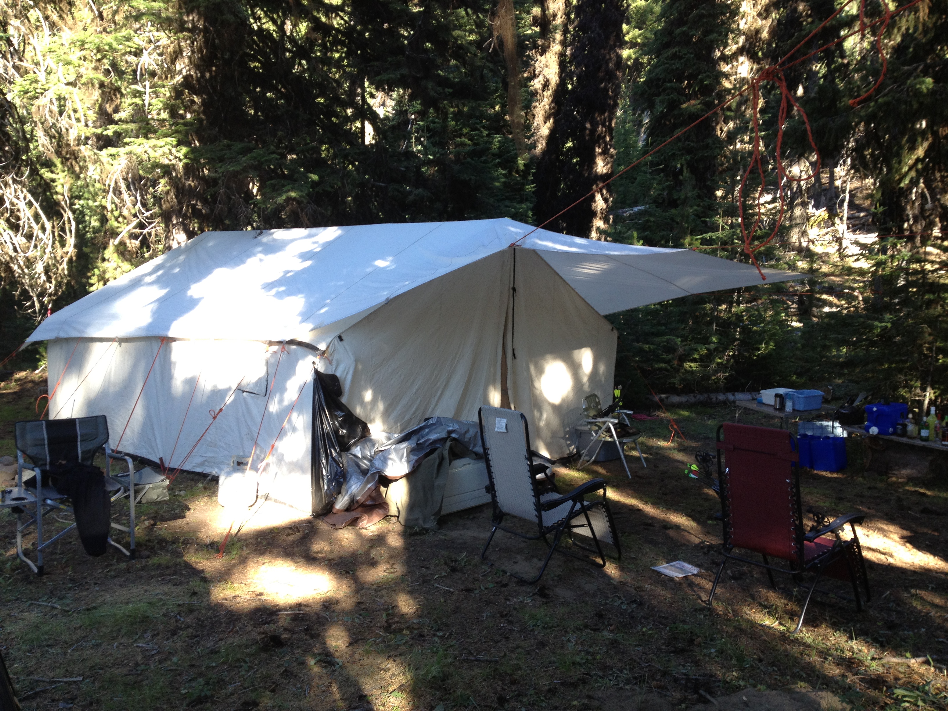 My goal every year is to at least hunt the first and last day of each bow season here in Oregon (tags permitting). Nothing beats the anticipation and excitement of opening day. For the past few seasons I have hunted the first week of the season out of an eastern Oregon camp. My friends set up camp on the Thursday prior to the opener to ensure we have the best spot for our base of operations. A quality camp makes the hunt better. Early season brings warm days with cool nights, plus the infamous dust that grows each day as hordes of hunter pound the roads. Being off the beaten path and way back on rough roads the trailers, four wheelers, and generators don’t travel makes our camp pleasant.
